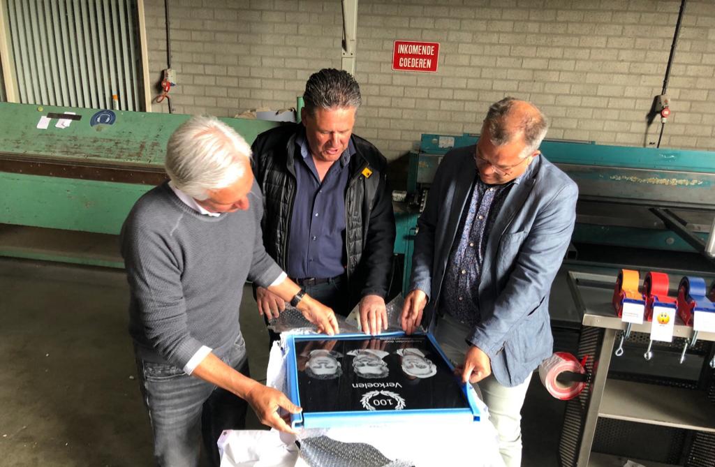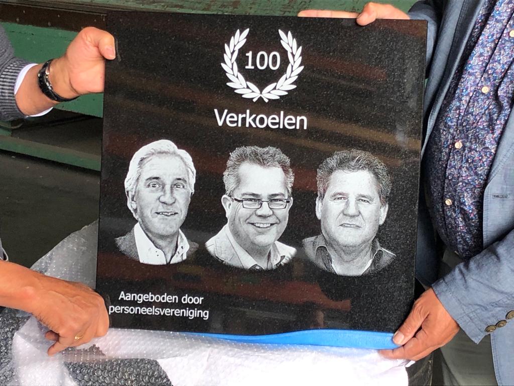 Spontaan werden we als drie aandeelhouders zeer vriendelijk doch dringend verzocht om alle drie aanwezig te zijn op onze gebruikelijke vrijdagmiddagborrel. Geweldig om te zien toen we aankwamen hoeveel van onze mensen er aanwezig waren. Al die mensen waar we zo trots op zijn en die het allemaal samen mogelijk maken om onze diensten voor de klanten uit te voeren. Als vertegenwoordiger van het voltallige personeel werden we toegesproken door Glen Tonessen over ons 100 jarig bestaan. Alle drie zijn we zeer vereerd om een fantastisch mooie natuursteen plaquette in ontvangst te mogen nemen van het voltallige personeel.