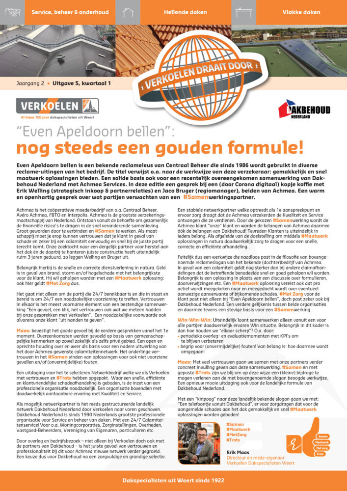 Nieuwsbrief kwartaal 1 – 2021 ”Even Apeldoorn bellen” nog steeds een gouden formule!